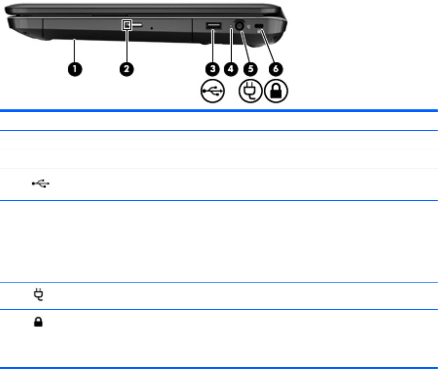 (1) Optical drive (select models only) Plays optical discs, such as CDs, DVDs, and Blu-ray discs.
