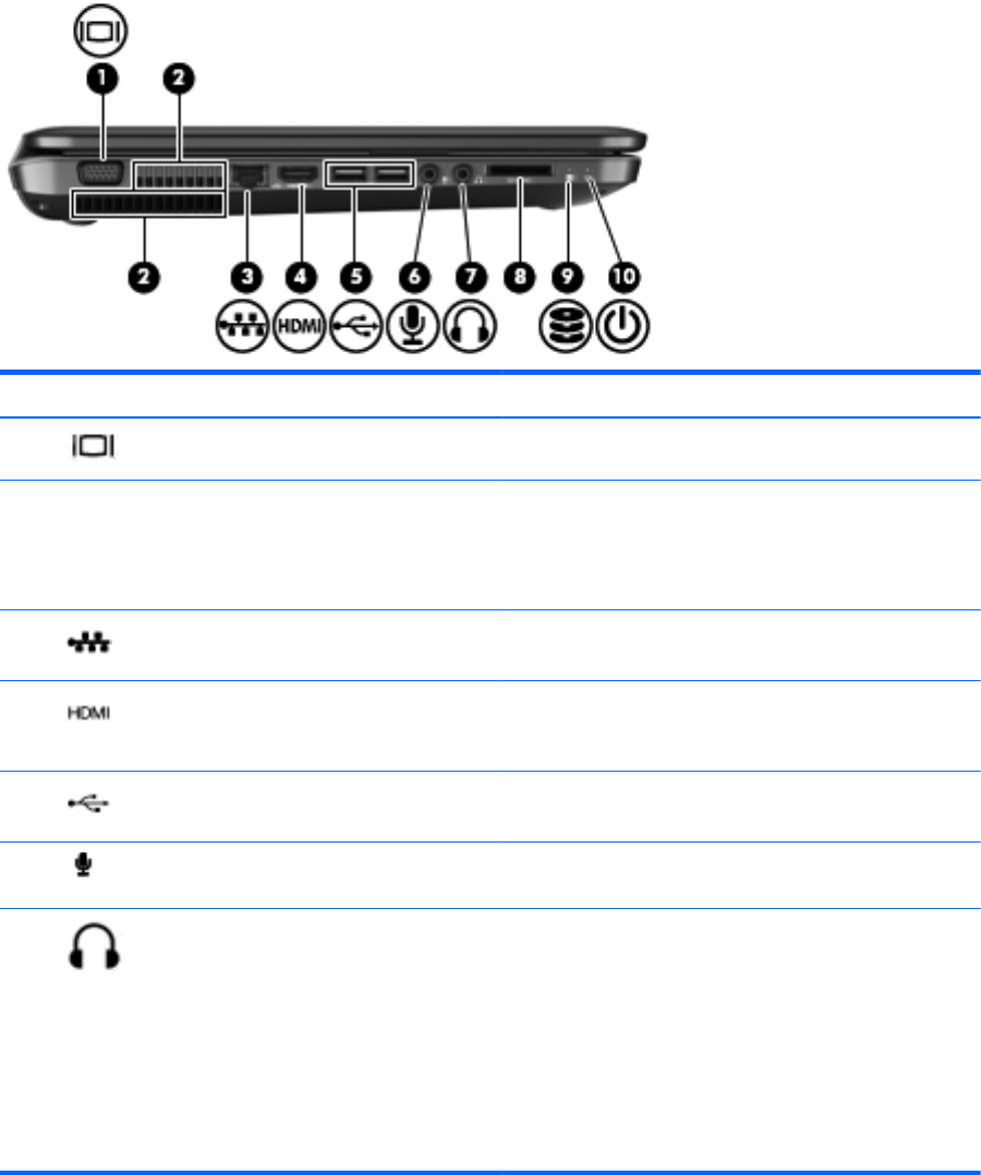 Audio-in (microphone) jack Connects an optional computer headset microphone, stereo