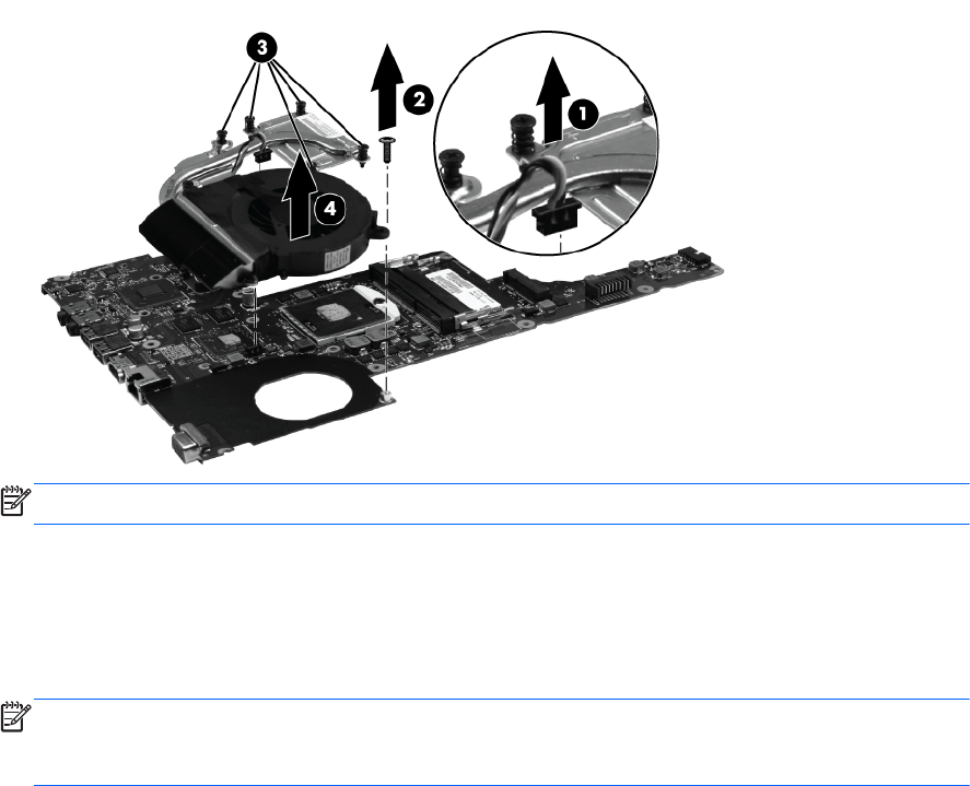 Remove the fan/heat sink assembly (4) by lifting it straight up.