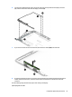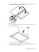 6. To remove the display/webcam cable, remove the cable from the clips built into the display enclosure