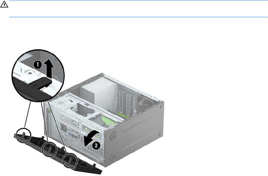 6. 將面板側面的三個扣片拉開 (1),然後旋轉面板脫離機座 (2)。