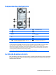 Componentes do painel frontal A configuração da unidade pode variar dependendo do modelo. Alguns modelos possuem uma tampa de painel que cobre o compartimento de unidade óptica. 1 Unidade óptica fina (opcional) 5 Luz de atividade da unidade de disco rígido 2 Botão Liga/Desliga de dois estados 6 Portas USB 3.0 (azul) 3 Conector do Microfone 7 Conector para fone de ouvido 4 Leitor de Cartão SD (opcional) NOTA: A Luz de Aceso normalmente fica branca quando a energia está ligada.