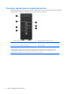 Элементы управления на передней панели Конфигурация дисководов может изменяться в зависимости от модели. Некоторые модели снабжены декоративной заглушкой, установленной в отсек оптического дисковода. 1 Тонкий оптический дисковод (дополнительно) 5 Индикатор активности жесткого диска 2 Кнопка питания с двумя функциями 6 Порты USB 3.0 (синие) 3 Разъем для подключения микрофона 7 Разъем наушников 4 Устройство чтения карт SD (дополнительно) ПРИМЕЧАНИЕ.
