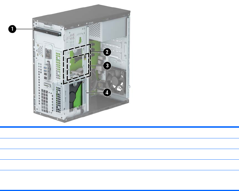 POZNÁMKA: Horný pevný disk môže obsahovať buď 3,5-palcový alebo 2,5-palcový pevný disk, ale nie obidva.