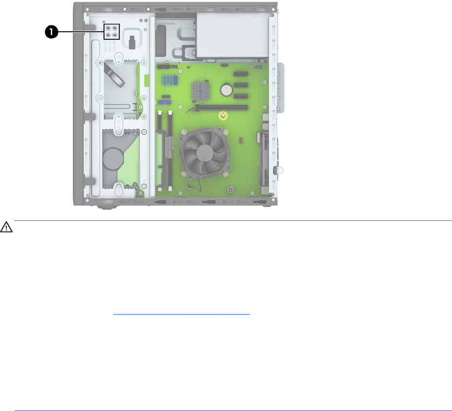 prednej strane skrinky za krytom (1). Montážne skrutky sú potrebné pre 3,5-palcové a 2,5-palcové