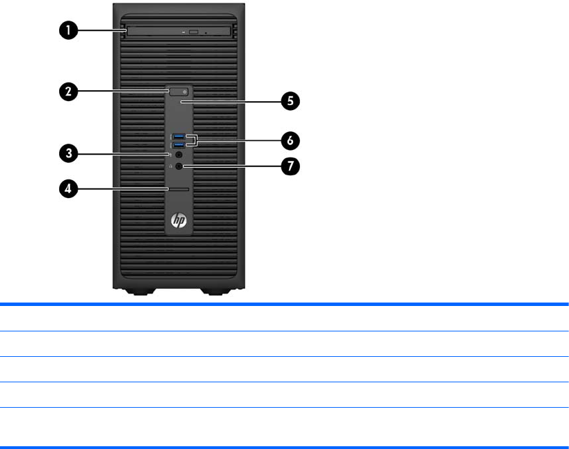 1 Tenká optická jednotka (voliteľné) 5 Indikátor činnosti pevného disku