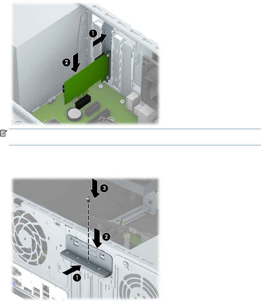 плати, а потім посуньте плату до задньої панелі корпусу (1), щоб нижня частина кронштейна на платі