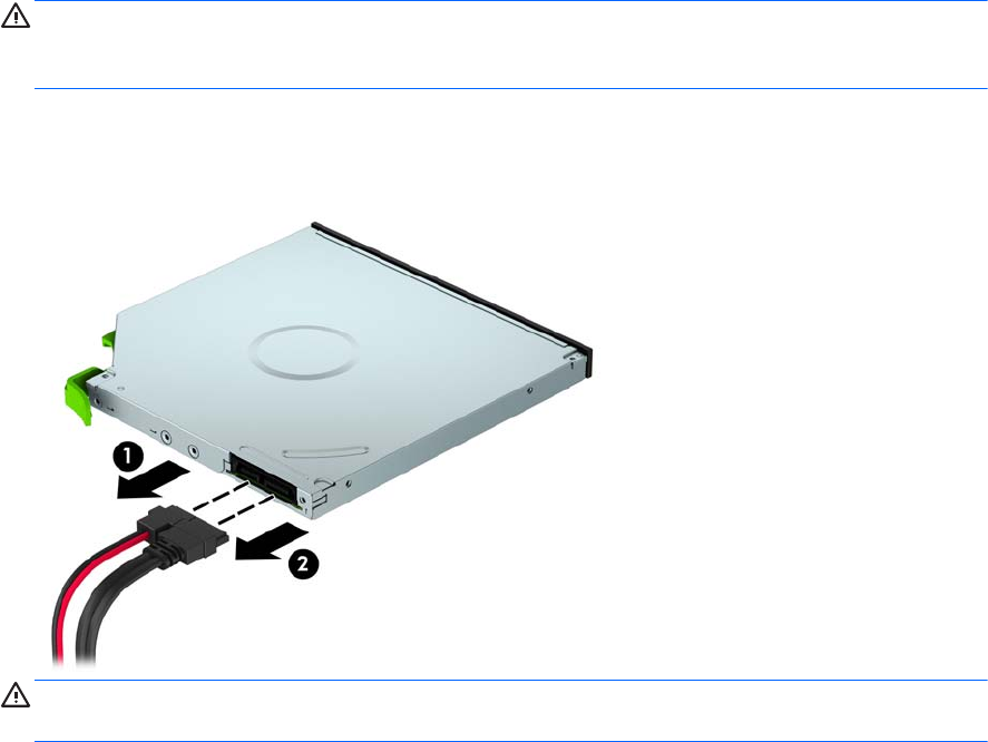 6. Isključite kabel za napajanje (1) i podatkovni kabel (2) sa stražnje strane optičkog pogona.