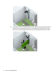 12. Paina laajennuskortin kiinnityssalpa kotelon takaosaa vasten (1) ja työnnä sitä alaspäin (2), jotta salvan