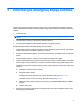 4 Atkūrimo veiksmai PASTABA: Galite atkurti tik tuos failus, kurių atsargines kopijas esate sukūrę anksčiau. HP rekomenduoja nustačius kompiuterį sukurti atkuriamųjų diskų rinkinį (viso disko atsarginę kopiją) naudojant „HP Recovery Manager“ (HP atkūrimo tvarkytuvę). Programa „Recovery Manager“ (atkūrimo tvarkytuvė) leidžia pataisyti arba atkurti sistemą, jei ji sugedo arba tapo nestabili.