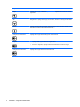 2 Nuppude lühiülevaade See jaotis sisaldab teavet kaugjuhtimispuldi nuppude funktsioonide kohta. MÄRKUS. Sõltuvalt kaugjuhtimispuldi mudelist võib nuppude asetus olla erinev. Nupp Toide Funktsioon ● Kui arvuti töötab, vajutage seda nuppu arvuti toitenupu funktsiooni kasutamiseks. Lisateavet leiate arvuti kasutusjuhenditest. Kasutusjuhendite vaatamiseks valige Start > Help and Support (Spikker ja tugi) > User Guides (Kasutusjuhendid). MÄRKUS. Kaugjuhtimispulti ei saa kasutada, kui arvuti ei tööta.
