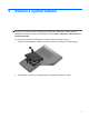 3 Vložení a vyjmutí baterie VAROVÁNÍ! Zlikvidujte použité baterie v souladu s pokyny v části Poznámky o předpisech, bezpečnosti a prostředí na disku uživatelských příruček nebo v Nápovědě a odborné podpoře. Uživatelské příručky jsou dostupné prostřednictvím nabídky Start > Nápověda a odborná pomoc > Uživatelské příručky. Pro vložení nebo výměnu baterie dálkového ovládání postupujte dle těchto pokynů: 1. Na zadní straně dálkového ovládání otevřete kryt prostoru pro baterii (1) a sejměte jej (2). 2.