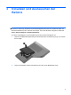 3 Einsetzen und Austauschen der Batterie VORSICHT! Entsorgen Sie gebrauchte Batterien entsprechend den Anleitungen im Dokument Hinweise zu Zulassung, Sicherheit und Umweltverträglichkeit auf einer User Guides Disc (Disc mit Benutzerhandbüchern) oder unter Hilfe und Support. Um auf die Hinweise zuzugreifen, wählen Sie Start > Hilfe und Support > Benutzerhandbücher. So setzen Sie die Batterie in die Fernbedienung ein oder tauschen die Batterie aus: 1.