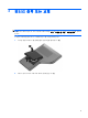 3 배터리 장착 또는 교체 경고! 다 쓴 배터리는 사용 설명서 디스크 또는 도움말 및 지원에서 규제, 안전 및 환경 고지 사항의 지침에 따라 폐기하십시오. 고지 사항에 액세스하려면 시작 > 도움말 및 지원 > 사용 설명서를 선택하 십시오. 리모컨의 배터리를 장착하거나 교체하려면 다음 지시를 따르십시오. 1. 리모콘 뒷면의 배터리 함 덮개를 들어 올리고 (1) 분리합니다 (2). 2. 배터리 양극이 위로 오게 하여 배터리 함에 넣습니다 (1).