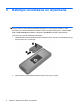 3 Baterijas ievietošana un izņemšana BRĪDINĀJUMS! No izlietotajām baterijām jāatbrīvojas atbilstoši instrukcijām dokumentā Regulatory, Safety and Environmental Notices (Normatīvie paziņojumi un informācija par drošību un vides aizsardzību), kas atrodas palīdzības un atbalsta centrā. Lai piekļūtu paziņojumiem, izvēlieties Start (Sākt) > Help and Support (Palīdzība un atbalsts) > User Guides (Lietotāja rokasgrāmatas). Lai ievietotu vai nomainītu tālvadības pults bateriju: 6 1.