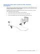 Modemo laido prijungimas DĖMESIO! Norėdami sumažinti elektros smūgio, gaisro ar įrangos gedimo pavojų, nejunkite modemo laido (tiekiamas tik su tam tikrais modeliais) ar telefono laido į RJ-45 (tinklo) lizdą. Kaip prijungti modemo laidą: 2 1. Junkite modemo laidą į modemo lizdą (1), esantį kompiuteryje. 2. Junkite modemo laidą į sieninį RJ-11 telefono lizdą (2).