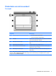 Onderdelen aan de bovenkant Touchpad Component Beschrijving (1) ● Wit: het touchpad is ingeschakeld. ● Oranje: het touchpad is uitgeschakeld. Touchpadlampje (2) Touchpad* Hiermee kunt u de aanwijzer (cursor) verplaatsen en onderdelen op het scherm selecteren of activeren. (3) Linkerknop van het touchpad* Deze knop heeft dezelfde functie als de linkerknop op een externe muis. (4) Aan/uit-knop van het touchpad Hiermee schakelt u het touchpad in of uit.