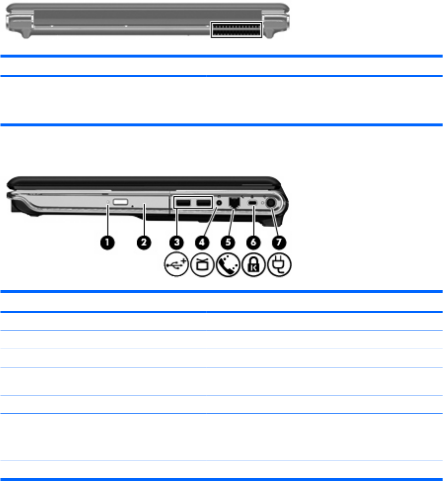 RJ-11(调制解调器)插孔(仅限某些机型) 连接调制解调器电缆。