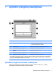 Jutiklinės planšetės naudojimas Norėdami perkelti žymiklį, slinkite pirštu jutiklinės planšetės paviršiumi į tą pusę, į kurią norite perkelti žymiklį. Jutiklinės planšetės mygtukus naudokite kaip išorinės pelės klavišus. Kad slinktumėte aukštyn arba žemyn, naudodami jutiklinės planšetės vertikalios slinkties zoną, braukite pirštu per linijas aukštyn arba žemyn. PASTABA: jei naudojate jutiklinę planšetę žymikliui judinti, prieš perkeldami pirštą į slinkties zoną, turite pakelti jį nuo jutiklinės planšetės.