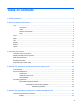 Table of contents 1 Product description ........................................................................................................................................ 1 2 External component identification ................................................................................................................ 4 Top ....................................................................................................................................................... 4 TouchPad ...............