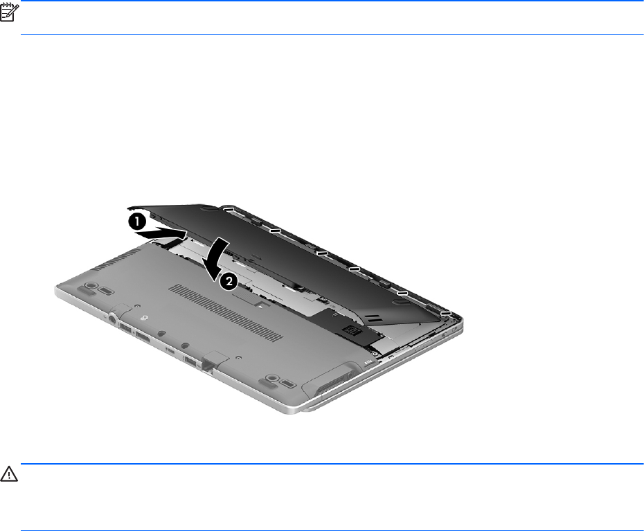 Περιστρέψτε την μπαταρία προς τα κάτω μέχρι να εφαρμόσει στη θέση της (2). Η