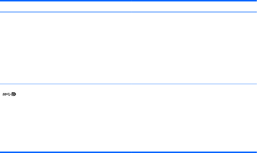 USB Type-C SuperSpeed port and DisplayPort When the computer is on, connects and charges most USB