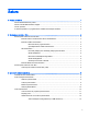 Saturs 1 Pareiza startēšana ............................................................................................................................................ 1 Datora labākā lietošanas prakse .......................................................................................................... 1 Datora nodrošinātās izklaides iespējas ................................................................................................ 1 Citi HP produkti .............................................