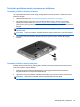 ant akumuliatoriaus (1) su skylėmis kompiuteryje, tada nuleiskite standųjį diską (2) į standžiojo