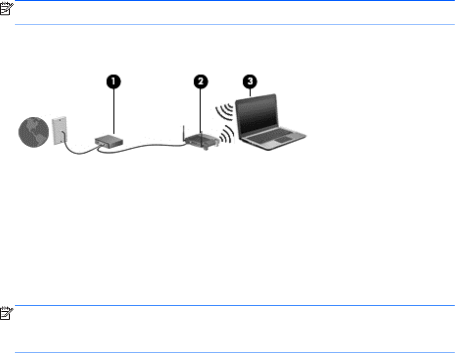 De afbeelding laat een voorbeeld zien van een WLAN dat is verbonden met internet. Naarmate het