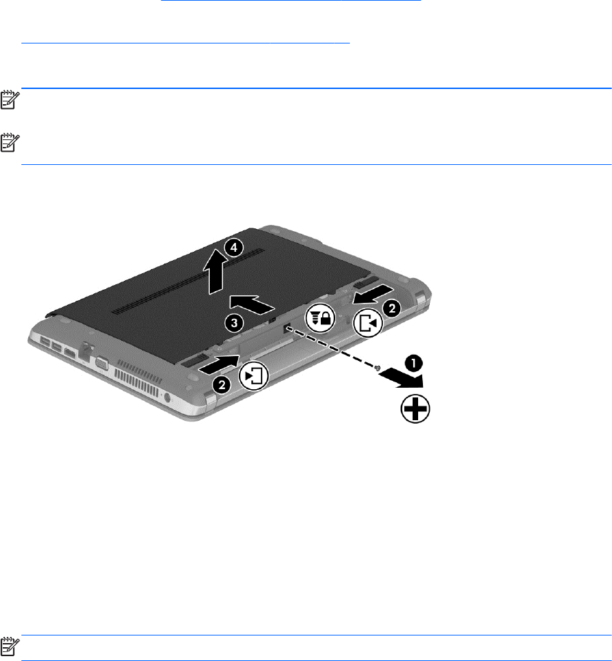 3. Schuif het onderpaneel in de richting van de voorkant van de computer (3) en breng het omhoog