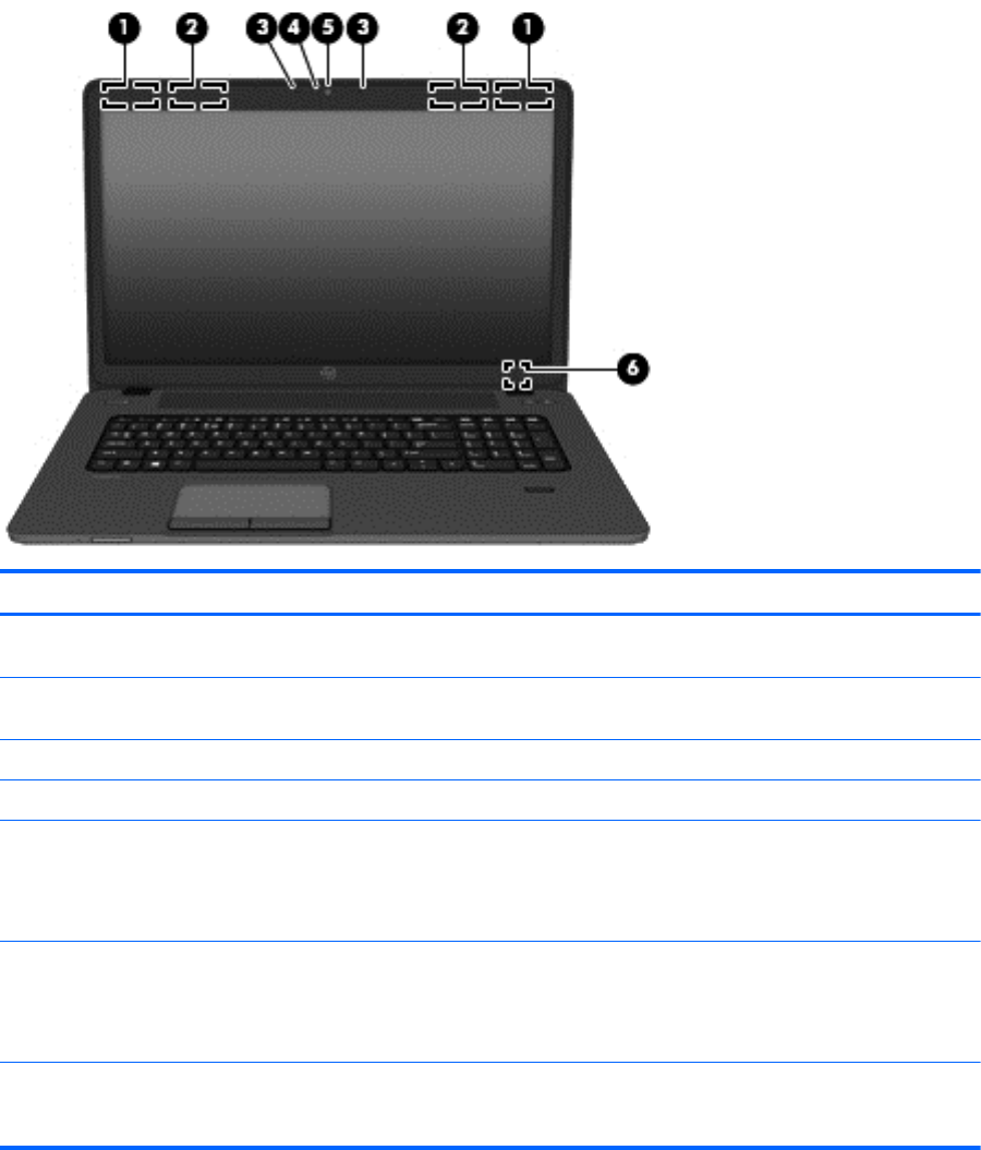 (5) Webkamera (kun på enkelte modeller) Brukes til å spille inn video og ta stillbilder.