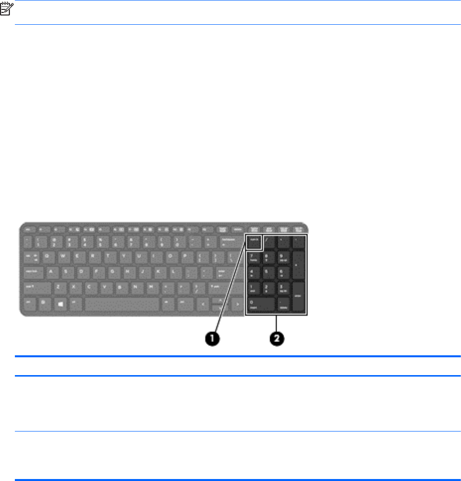 MERK: Den innebygde numeriske tastgruppen slås av når et eksternt tastatur eller en numerisk