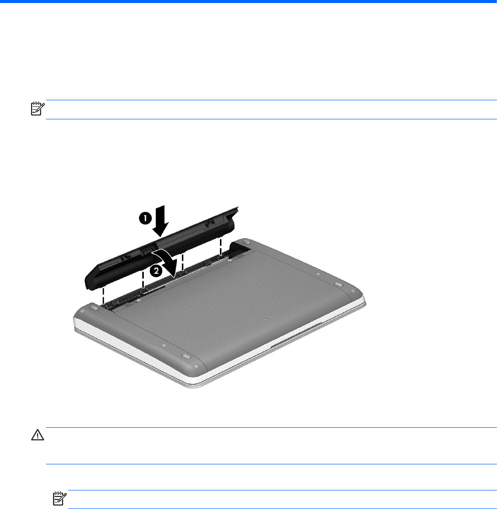 MERK: Du finner mer informasjon om bruk av batteriet i Referansehåndbok for HP bærbar PC.