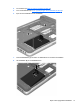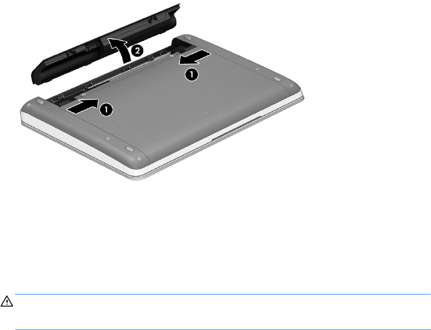 2. Vipp batteriet opp (2) og ta det ut av datamaskinen.