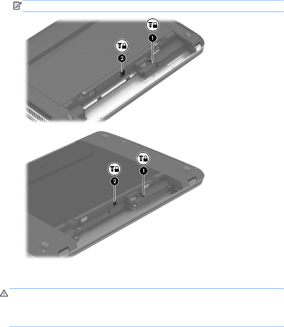 2. Hent tyverisikringsskruen ut av batteribrønnen (1) og sett den inn (2) for å låse servicedekselet