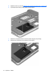 1. Vložte baterii do bateriové pozice a zarovnejte výstupky (1) s drážkami na počítači. Poté zatlačte