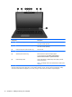 (4) Webcam light (select models only) On: The webcam is in use.