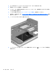 9. ハードドライブ タブをコンピューターの側面に向かって引いて(1)、ハードドライブの固定を