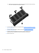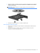 отделението за модул с памет, след което натиснете модула (2) в слота, докато той
