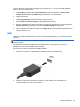 Hvis datamaskinen har et ladet batteri og går på vekselstrøm via strømadapteren, går datamaskinen