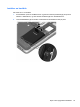 Sette inn eller ta ut batteriet på side 37.)
