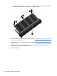 a. Alinhe a borda do módulo de memória que apresenta uma ranhura (1) com a lingueta no