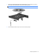 3. Retire o disco (3) da bandeja pressionando cuidadosamente o eixo e levantando as bordas do