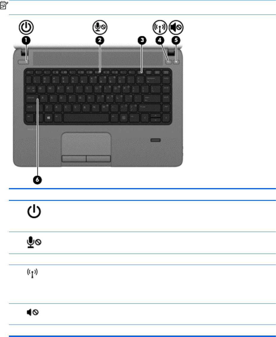 (6) Indicador luminoso de bloq mayús Encendido: Bloq mayús está activado.