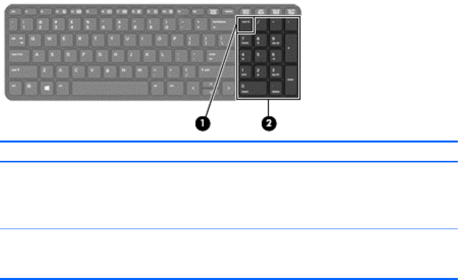 (1) Tecla bloq num Alterna entre las funciones de navegación y numérica del teclado