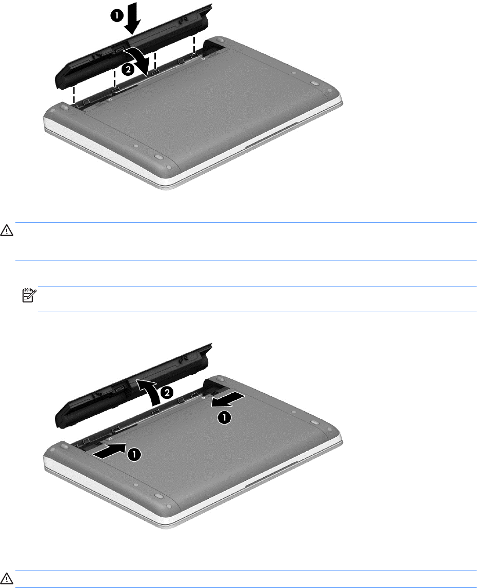 2. El pestillo de liberación de la batería fija la batería automáticamente en la posición correcta.