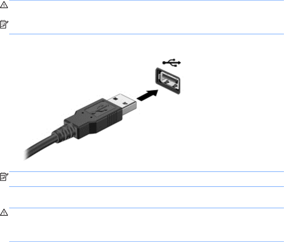 PRECAUCIÓN: Para evitar dañar el conector USB, utilice la mínima fuerza posible para conectar