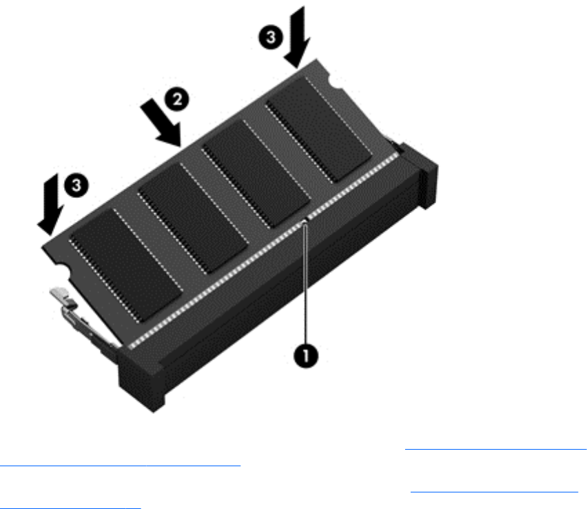 c. Presione suavemente el módulo de memoria (3) hacia abajo, presionando sus bordes