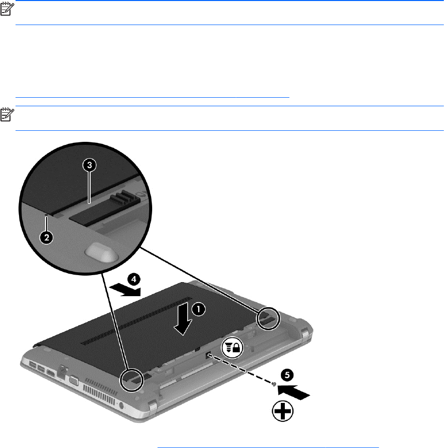3. Schieben Sie die Service-Abdeckung in Richtung des Akkufachs, bis die Service-Abdeckung an