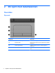(1) Styreputens av/på-knapp Slår styreputen av og på.
